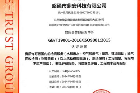 2003年11月10日,昭通市鼎安科技有限公司成立,初始主要從事第三方安全工程技術(shù)服務(wù),經(jīng)多年運(yùn)營,發(fā)展為多專業(yè)綜合科技平臺,為社會(huì)提供多種專業(yè)技術(shù)服務(wù)工作。 現(xiàn)公司注冊資金為1200萬元,公司法定代表人:毛衛(wèi)旭。公司主要業(yè)務(wù):安全評價(jià)、安全標(biāo)準(zhǔn)化評審、安全工程技術(shù)服務(wù);環(huán)境監(jiān)測、職業(yè)衛(wèi)生檢測、檢驗(yàn);法律訴訟及非訴訟服務(wù);司法鑒定、固定資產(chǎn)投資項(xiàng)目節(jié)能服務(wù);工程咨詢;工程測量測繪;安全教育培訓(xùn)等。是安全生產(chǎn)服務(wù)、安全教育培訓(xùn)機(jī)構(gòu),也是環(huán)境監(jiān)測和職業(yè)衛(wèi)生服務(wù)機(jī)構(gòu),同時(shí)也是綜合的檢測檢驗(yàn)、綜合科技平臺服務(wù)機(jī)構(gòu)。多年來為公、檢、法、司、軍、警、海關(guān)、仲裁、安監(jiān)、工礦商貿(mào)企業(yè)、社會(huì)團(tuán)體及個(gè)人提供多專業(yè)技術(shù)服務(wù)。